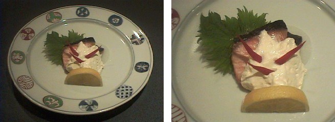 この時期、魚屋の店先には毎日と言ってよいほど鮭(サーモン)が並んでいます。サーモンを使った料理はいろいろありますが、今回はサーモンを自家製で軽くスモークしてみました。そのままお客様にお出ししてもよいのですが、スモークサーモンと言えばメロンとかパパイヤなどを薄切りにして添えた料理があることですし、ここはそのイメージをそのまま使ってみるのも悪くないなと思い、パパイヤをムース状にして添えてみました。
