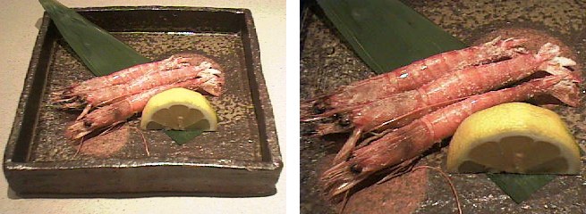 浜名湖で採れるものは、体長が9ぐらいまでの物を「細巻き」、それより大きくて12ぐらいまでの生後8〜10ヵ月の物を「巻き」あるいは「巻き海老」と呼んで、それ以上の「車海老」と区別しています。現在「車海老」は、その漁獲量のほとんどを養殖の海老がしめるまでになっていますが、浜名湖ではこれから夏にかけて「焚きや漁」と言われる少し変わった漁が始まります。夜中にいかだを組んで篝火(かがりび)を焚いて、その火に集まってくる魚や海老を採るのです。浜名湖の車海老は自分の体長の二倍ほどにものびた、触角を持っていることが特徴で、海老の色自体も養殖の海老よりは少し薄いようです。