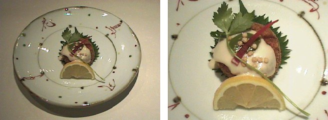 白身魚と海老のすり身に、ほぐした蟹の身をたっぷりと入れ、みじん切りにした玉葱の水気をしっかり取ったものを混ぜ合わせます。さらにホイップした生クリームを少しづつ混ぜていき、、塩と胡椒で味を付けていきます。そして、丸く饅頭の形に取り、メリケン粉を付け、玉子をくぐらせパン粉をまぶして、後は油で揚げれば出来上がりです。しんじょうにパン粉を付けて揚げる、いわゆるフライのようにして味わって頂きます。