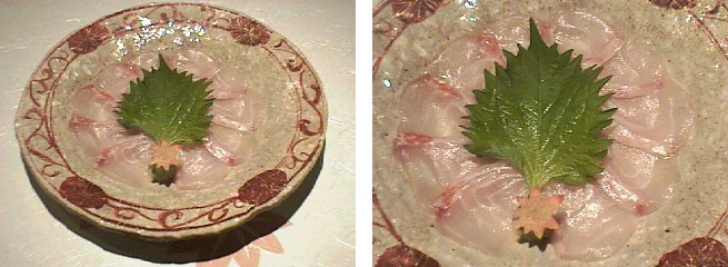 今回、このお刺身には芳水のひやおろしを合わせてみました。刺身もお酒も共にさっぱりとしているものを合わせました。なかなかいけると思います。