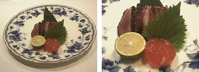 西京味噌に、にんにく、酒、味醂を入れ味を調え、この中に鴨を漬け込んで2日ほど置いておきます。火を通すときには、鴨を半分ほどに切って網の上で軽く火を通します。これを適当な枚数に切り分け、同じく西京味噌に漬け込んでおいた卵の黄身の味噌漬けを上にのせ、お客様にお出しします。この料理は、鴨の味噌漬けより玉子の味噌漬けの方が難しいかもしれませんが、この玉子と一緒に鴨を食べる事が大切なのです。