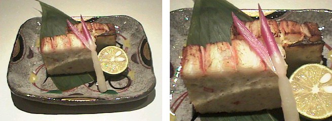 蟹をたっぷりと使ったちょっと贅沢な焼き物です。まず、玉子に蟹の身をたっぷり入れ、白身魚のすり身を入れて、しんじょうを作ります。このしんじょうの表面にもたっぷりと蟹の身を並べていきます。食べやすい大きさに切り分けて軽く表面を焼きます。簡単な料理ですが、蟹の味を壊さないようにあまり余分な仕事はしないようにしました。今回使った、蟹の身はずわい蟹のものですが、いろんな蟹を使って作る事が出来ます。贅沢に作ろうと思ったら、やはりたらば蟹を使って作のがいいでしょう。ずわい蟹は冬の日本海の味覚として知られていますが、東京、大阪では、松葉かに、越前がにと呼ばれています。