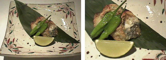 この料理も「ピザ」を食べているときに思いついたものです。ピザ生地の変わりになるものが何かないかと思っていましたが、白身の魚でもいけるんじゃないかと思い、試してみたところ、これも大成功でした。白身の魚(今の時期はマダカを使っています)は揚げたときにふんわりと揚がるようにして下さい。ゴルゴンゾーラもあまり量が多いと癖が強くなってしまうので、好みに合わせてというところでしょうか?このところ、貴田乃瀬は「イタリアンフェア」のようだとお客様に言われています。