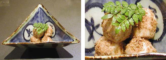 皮をむき、きれいにした小芋を薄味で炊いておきます。酒盗、アンチョビー、鰹節を鍋に入れ、弱火でいる様に火を通します。完全に混ざり火が通ったらあたりばちでよくあたります。粉上になったら新聞紙に広げ冷ましておきます。この粉を小芋にまぶして器に盛れば完成です。簡単な一品ですが、ちょっとしたおつまみがほしい時には喜ばれます。