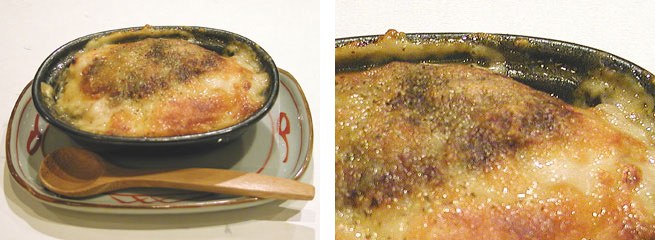 牡蠣を使った料理で、毎年出しているのが牡蠣のグラタンです。この牡蠣グラタン、実は毎年少しづつ変えているのです。今年は、味噌に山椒を入れ「山椒味噌グラタン」にしてみました。お客さまの評判は上々で、今までの味噌の中では一番成功したかもしれません。グラタンのふたを取ると山椒の香りがふんわりとして、牡蠣との相性もいい様です。