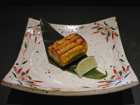 本当にめんどくさい仕事ですが、一昨年これを作ってからこの季節になると「あのとうもろこしできたぁ」っと必ず聞かれるほどの一品になってしまいました。この時期の私は、冷たい野菜の炊き合わせ・この焼きとうもろこししんじょう・トマトの冷やし蒸しなど、残業をしなければできないような仕事を抱えて一生懸命働いています。それでも、お客様に喜んでいただければ・・・そう思ってがんばっています。