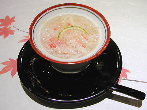 ・・・というわけで、あまりにも単純で申し訳ないくらいの仕事ですが、蟹の身をかけてみました。その代わり、たっぷりの蟹の身を入れてあります!