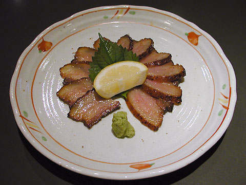 中華料理の豚の紹興酒蒸しをヒントにしてみましが、なんだかチャーシューのようになってしまいました。見た目はチャーシューなのですが、味はむしろ豚の角煮に近いようなものを想像してください。なんともいい加減な表現で申し訳ありません。夏に始めた生ビールのお供・・でしょうか。