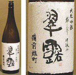 今回の「翆露」は、この蔵元の自信作、とくに力を入れている「純米酒系」の吟醸と言う事もあり、多くのお客様に喜んで頂いています。甘く、とろみを感じ、そのくせすっきりと口に残らない、甘口タイプのお酒としては、言う事のないできあがりだと思います。濃い目の味付けの料理のサポートをちゃんとしてくれる完成度の高い酒です。