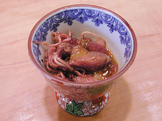 隣に座っていたお客様は煮詰め派でした。それでは・・と握っていただくと確かに美味しいのですが、ホタルイカのワタの味より煮詰めのほうが強く感じてしまって・・。私は生姜ですが、その隣の方によると生姜はワタの甘味を生かしていない、やはりワサビだと言う事になるようです。